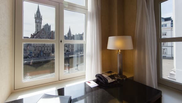Das Ghent Marriott Hotel besitzt 150 Wohnräume mit Klimatisierung. Ein Café, eine Bar, ein Restaurant sowie ein Tagungsraum sind Teile der Räumlichkeiten. Das Haus besitzt selbstverständlich auch einen Fahrstuhl. Ein Friseur-/Schönheitssalon, Blumenladen sowie eine Apotheke sind Teile der Unterkunft. Das Serviceangebot beinhaltet Wäscheservice, Weckdienst, Postdienstleistungen, Chemische Reinigung, Bügelservice sowie Schuhputzservice.