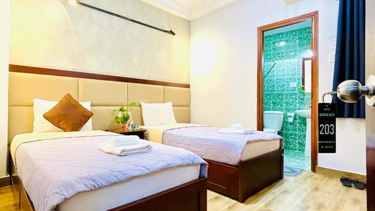 Das Giang Son Hotel liegt zentral in Ho Chi Minh, nur 5 Gehminuten vom Ben Thanh Market entfernt. Sehenswürdigkeiten wie der Palast der Wiedervereinigung, das Saigon Opera House und die Notre-Dame-Basilika sind in etwa 15 Gehminuten zu erreichen. Der internationale Flughafen Tan Son Nhat ist in 45 Minuten erreichbar.