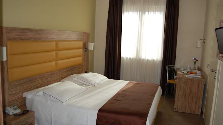 Die Zimmer des Giga Hotels sind klimatisiert und verfügen über eine Heizung, einen Flachbild-TV sowie eine Minibar. Ein Safe, ein Kühlschrank und ein Schreibtisch sind ebenfalls vorhanden. Das Badezimmer ist mit einer Dusche und einem Bidet ausgestattet, und es stehen Kosmetikartikel zur Verfügung. Zudem bietet das Hotel rollstuhlgerechte Zimmer an.