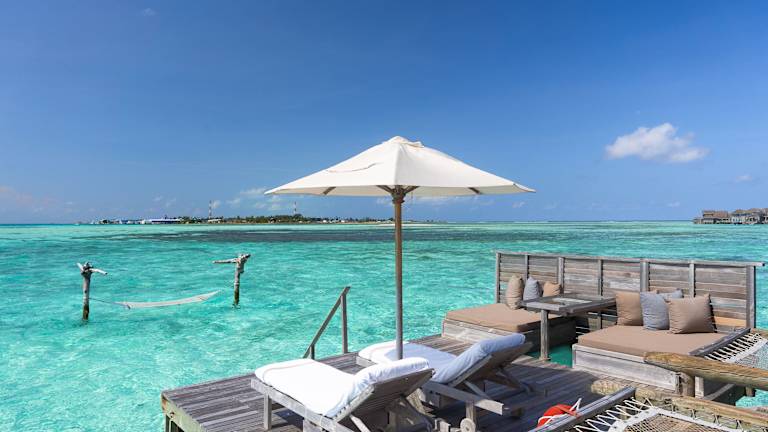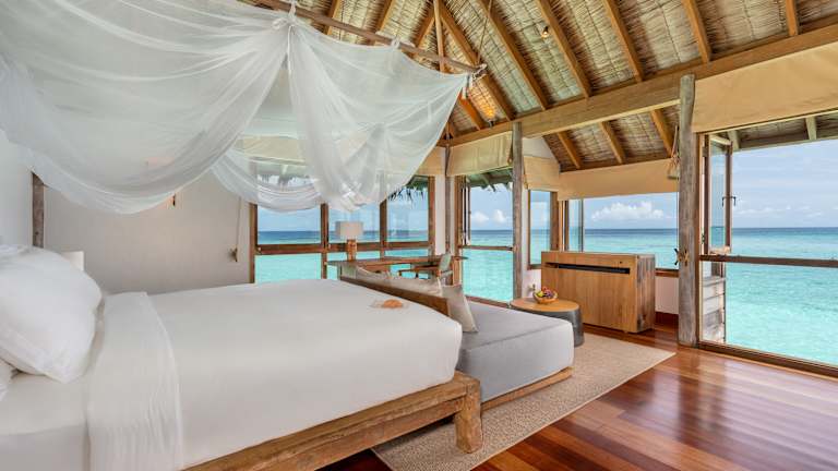 Das Resort bietet mehrere Zimmertypen, darunter Wasserbungalows, Villen und Suiten, jeweils mit privatem Sonnendeck. Die Zimmer sind modern ausgestattet mit Klimaanlage, WLAN, Bulter-Service, Minibar und Fernseher. Die Einrichtung ist geschmackvoll und sorgt für ein heimeliges Ambiente. Einige Zimmertypen verfügen zusätzlich über eigene Pools oder grosszügige Wohnbereiche.
