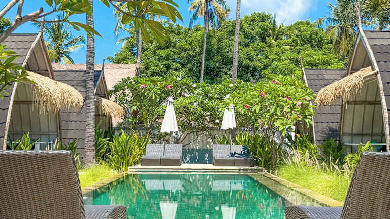 Die klimatisierten Zimmer des Gili Meno Escape sind komfortabel und stilvoll eingerichtet. Jedes Zimmer verfügt über einen Schreibtisch, einen Flachbild-TV und ein eigenes Bad. Von der Terrasse aus genießen Sie einen herrlichen Blick auf den Pool und den Garten. Die Zimmer sind außerdem mit einem Kühlschrank ausgestattet, damit Sie Ihre Getränke und Snacks immer griffbereit haben. Genießen Sie eine erholsame Nacht in den gemütlichen Betten und lassen Sie den Alltag hinter sich.