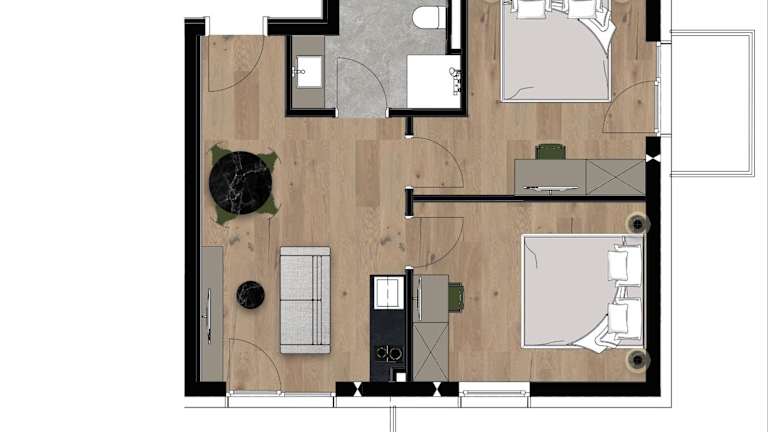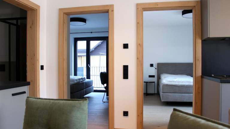 Die Ferienwohnung besteht aus 2 Schlafzimmern, einem Wohnzimmer mit einem TV sowie einer gut ausgestatteten Küche mit Kühlschrank und Geschirrspüler. Ein Badezimmer mit Dusche ist ebenfalls vorhanden. Handtücher und Bettwäsche werden bereitgestellt.