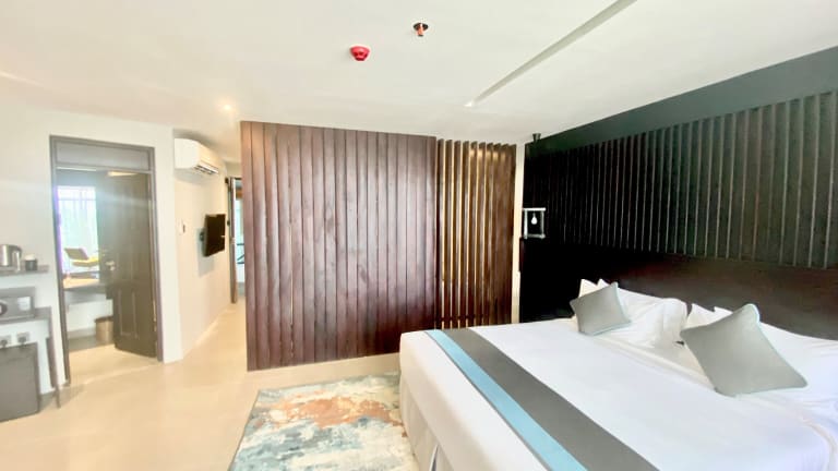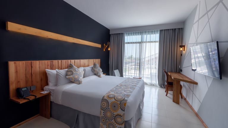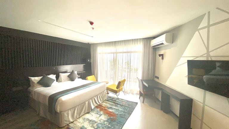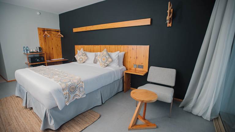 Die klimatisierten Zimmer des Giraffe Beach Hotels sind mit einem Schreibtisch, einem Wasserkocher und einem Kühlschrank ausgestattet. Jedes Zimmer verfügt über einen Safe, einen Flachbild-TV und ein eigenes Badezimmer mit Bidet. Gäste finden auch Bettwäsche und Handtücher in den Zimmern. Es stehen Familien- und Nichtraucherzimmer zur Verfügung.