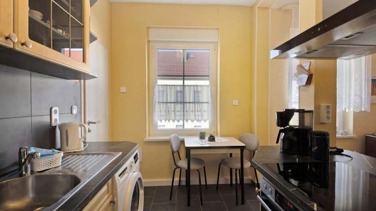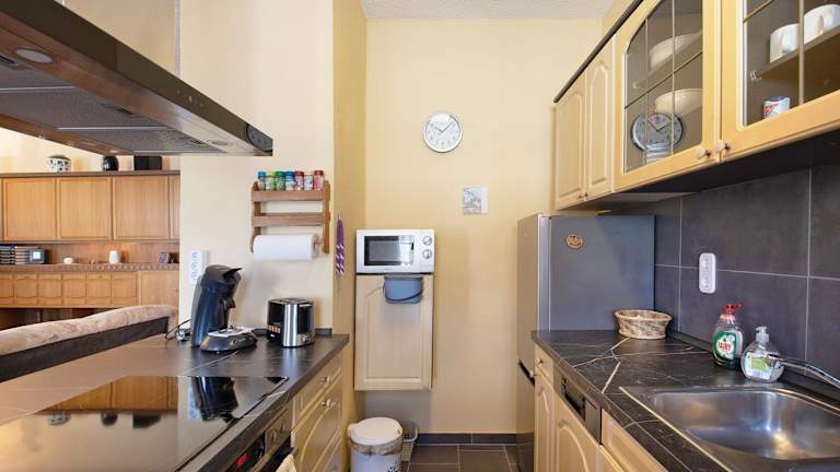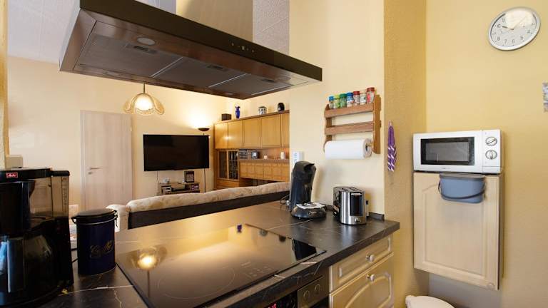 Die Ferienwohnung besteht aus einem Schlafzimmer, einem Wohnzimmer und einer voll ausgestatteten Küche, die mit einem Kühlschrank und einer Kaffeemaschine ausgestattet ist. Zudem gibt es ein Badezimmer mit einer Dusche sowie kostenlosen Pflegeprodukten. Handtücher und Bettwäsche werden zur Verfügung gestellt.