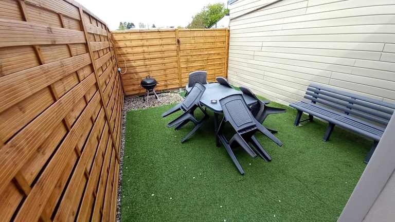 Das Ferienhaus verfügt über 2 Schlafzimmer, ein Wohnzimmer, eine voll ausgestattete Küche mit Kühlschrank und Kaffeemaschine sowie ein Badezimmer mit Dusche und kostenlosen Pflegeprodukten. Zudem werden Handtücher und Bettwäsche bereitgestellt. Eine Terrasse ist ebenfalls vorhanden.