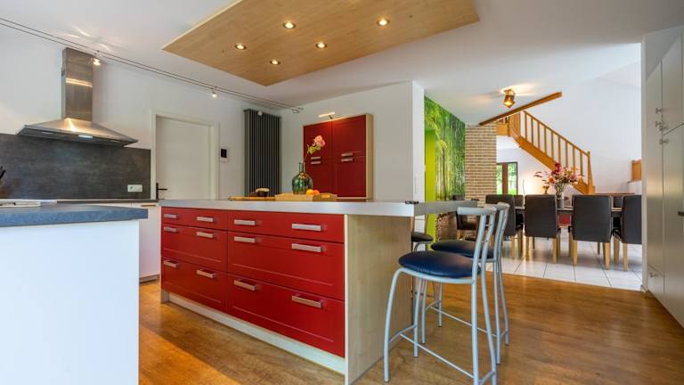 Das Ferienhaus verfügt über insgesamt 6 Schlafzimmer, eine voll ausgestattete Küche mit Kühlschrank und Geschirrspüler, einen Flachbild-TV und einen Sitzbereich. Es stehen 4 Badezimmer mit Dusche zur Verfügung.