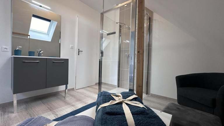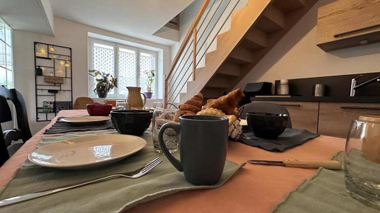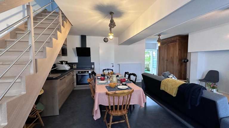Das Gîte Champêtre mit Blick auf den Garten bietet ein heimeliges Ambiente und Übernachtungsmöglichkeiten in einem Ferienhaus mit zwei Schlafzimmern. Die Unterkunft verfügt über eine Terrasse, die zum Verweilen einlädt, sowie eine Kaffeemaschine für den morgendlichen Kaffeegenuss.