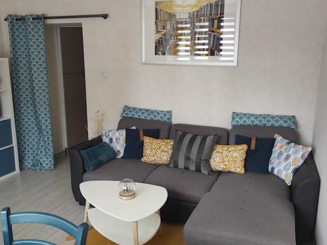 Die Ferienwohnung umfasst ein Schlafzimmer, ein Wohnzimmer sowie eine voll ausgestattete Küche mit Kühlschrank und Kaffeemaschine. Ein Badezimmer mit Dusche und Haartrockner ist ebenfalls vorhanden. Handtücher und Bettwäsche werden zur Verfügung gestellt.