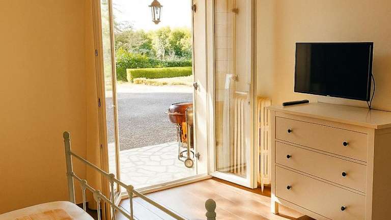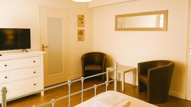 Gîte Chez Julie - Clima - Parking ist eine klimatisierte Ferienunterkunft mit 2 Schlafzimmern und 1 Badezimmer. Die Unterkunft bietet eine voll ausgestattete Küche, ein Essbereich, ein Flachbild-TV mit Kabelkanälen sowie eine Terrasse mit Gartenblick. Der Parkplatz vor Ort ist privat und steht kostenfrei zur Verfügung. Zudem bietet die Unterkunft kostenfreies Wifi in allen Bereichen und ist Nichtraucherzone. Die Gäste profitieren von einem Garten sowie Grillmöglichkeiten und können die Annehmlichkeiten des Aussenpools nutzen.