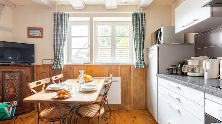 Die Unterkunft Gite Chez Marianne befindet sich in Riquewihr, einer malerischen Ortschaft mit zahlreichen Möglichkeiten zum Velofahren. Sie liegt 11 km von Colmar Expo und 15 km von Maison des Têtes entfernt. Sehenswürdigkeiten wie die Stiftskirche Sankt-Martin sind ebenfalls in der Nähe. Die Region bietet zudem schöne Wandermöglichkeiten und beeindruckende Ausblicke. Der Bahnhof Colmar ist 16 km entfernt, und der Flughafen Strassburg ist in 59 km erreichbar.