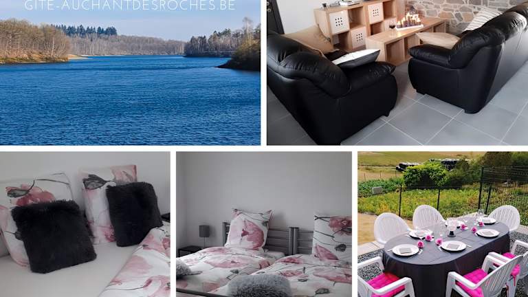 Au Chant Des Roches ist ein einladendes Ferienhaus, das sich durch einen gepflegten Garten und eine gemütliche Terrasse auszeichnet. Es handelt sich um eine Nichtraucherunterkunft, die für Gäste auf der Suche nach einer heimeligen Atmosphäre dient. Die Unterkunft wird privat geführt und verlangt einen Mindestalter von 18 für den Check-in, während für Gäste kein Mindestalter festgelegt ist. Junggesellenabschiede sind in dieser Unterkunft nicht gestattet.