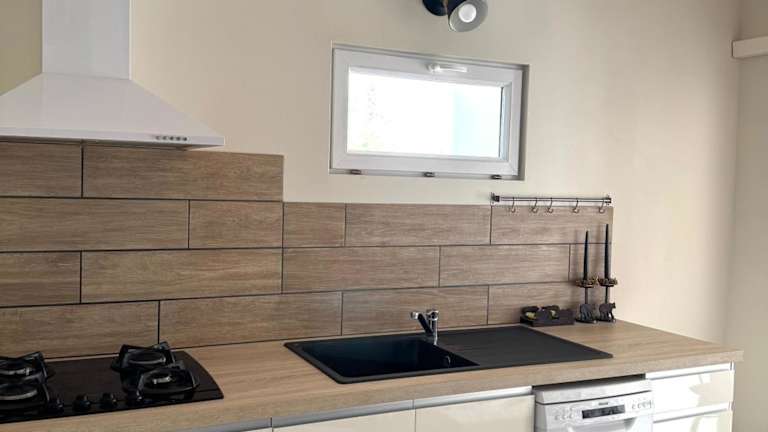 Das Ferienhaus besteht aus einem Schlafzimmer, einem Wohnzimmer und einem Badezimmer mit Dusche sowie kostenlosen Pflegeprodukten. Handtücher und Bettwäsche sind vorhanden. Klimaanlage sorgt für Bequemlichkeit.
