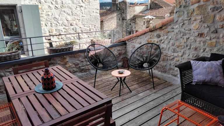 Das Gîte de charme au coeur de Ruoms avec terrasse befindet sich in einer großartigen Lage in Ruoms. Von hier aus erreichen Sie bequem viele der umliegenden Sehenswürdigkeiten. Der Pont d'Arc, eine natürliche Brücke über den Fluss Ardeche, ist nur 15 km entfernt. Die Schluchten der Ardeche, eine beeindruckende Schluchtlandschaft, liegen ebenfalls in der Nähe, nur 16 km vom Apartment entfernt. Die Höhle Chauvet, eine UNESCO-Weltkulturerbestätte mit prähistorischen Höhlenmalereien, ist ebenfalls einen Besuch wert und nur 14 km entfernt. Wenn Sie die Natur erkunden möchten, können Sie den Wald von Paiolive besuchen, der nur 20 km entfernt liegt. Für Unterhaltung und Spaß können Sie das Casino de Vals-les-Bains besuchen, das nur 30 km entfernt ist.
