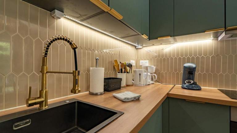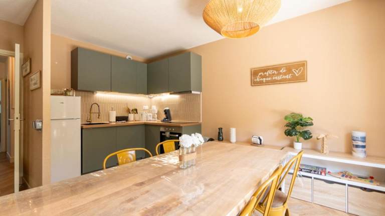 Die Ferienwohnung verfügt über 3 Schlafzimmer mit King-Size- und Queen-Size-Betten sowie Etagenbetten. Die gut ausgestattete Küche beinhaltet einen Kühlschrank und einen Geschirrspüler. Zudem steht ein Badezimmer mit Dusche zur Verfügung. Handtücher und Bettwäsche werden bereitgestellt.