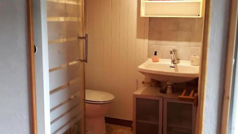 Das Ferienhaus verfügt über ein Schlafzimmer sowie ein Badezimmer mit Dusche. Die gut ausgestattete Küchenzeile beinhaltet einen Kühlschrank, einen Ofen und weitere Annehmlichkeiten. Gäste können in der Unterkunft einen Grill nutzen.