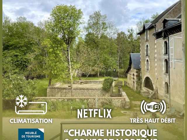 Gite du Meunier, Moulin de Vineuil, bietet Übernachtungsmöglichkeiten in einem heimeligen Ferienhaus mit Garten und Terrasse sowie Wassersportmöglichkeiten.