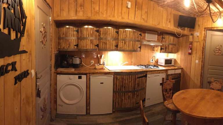 In der Unterkunft ist eine komplett ausgestattete Küche vorhanden, die mit einem Kühlschrank, Geschirrspüler, Ofen, Mikrowelle, Herdplatte, Toaster, Kaffeemaschine und Wasserkocher ausgestattet ist. Es können kulinarische Köstlichkeiten zubereitet werden. Essensmöglichkeiten sind nicht spezifisch angegeben.