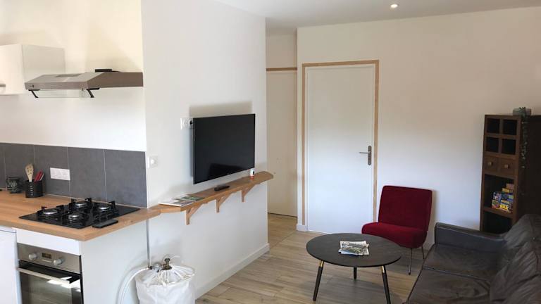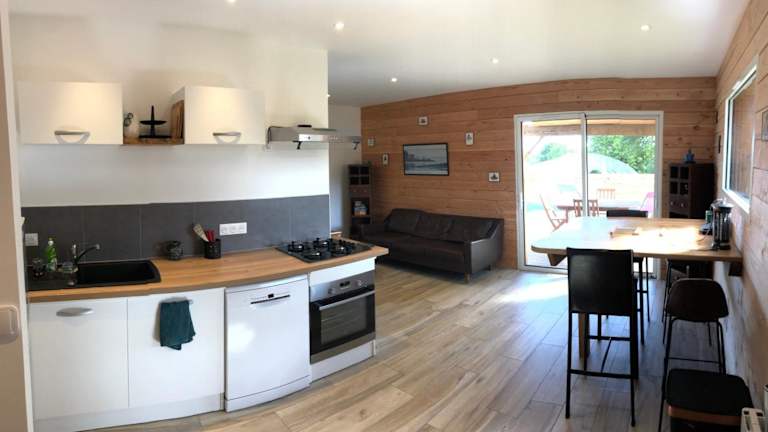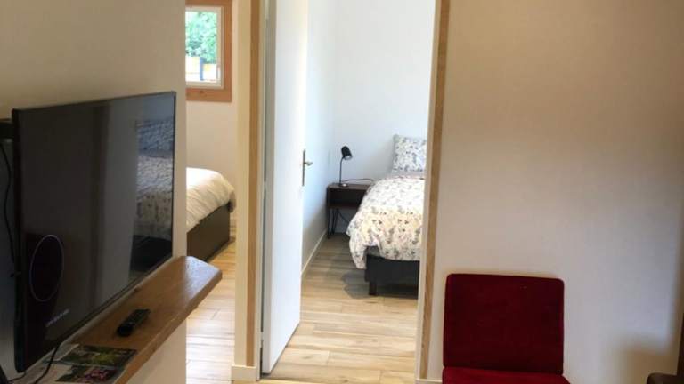 Das Ferienhaus verfügt über 2 Schlafzimmer, ein Wohnzimmer mit Flachbild-TV, eine gut ausgestattete Küche mit Kühlschrank und Geschirrspüler sowie ein Badezimmer mit Dusche. Handtücher und Bettwäsche werden bereitgestellt. Schallisolierte Zimmer sorgen für eine ruhige Nachtruhe.