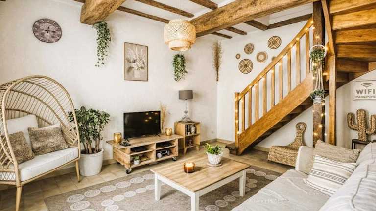 Das Gîte L'Escale - Maison de charme bietet Übernachtungsmöglichkeiten in einem heimeligen Ferienhaus. Die Unterkunft umfasst zwei Schlafzimmer, ein Wohnzimmer und eine voll ausgestattete Küche. Gäste erwarten Annehmlichkeiten wie kostenloses Wifi und einen TV.