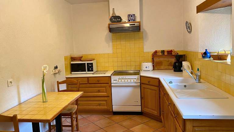 Das Ferienhaus bietet 4 Schlafzimmer, einen Flachbild-TV sowie eine gut ausgestattete Küche mit Kühlschrank und Geschirrspüler. Es gibt 2 Badezimmer mit Dusche und eine Terrasse, die zur Entspannung einlädt.