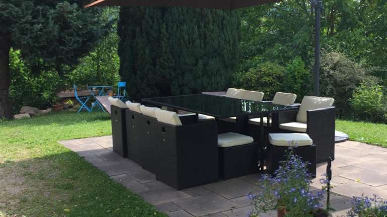 Die Unterkunft bietet 3 Schlafzimmer und 1 Badezimmer, ausgestattet mit Bettwäsche und Handtüchern. Zum zeitgemäßen Komfort gehört ein Flachbild-TV mit Satellitenkanälen, ein Essbereich sowie eine voll ausgestattete Küche. Die Terrasse ermöglicht einen Blick auf den Garten, was für eine angenehme Atmosphäre sorgt.