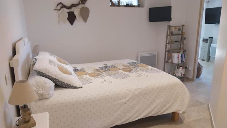 Die Ferienwohnung im Erdgeschoss verfügt über ein Schlafzimmer und ist mit einer gut ausgestatteten Küche, einem Kühlschrank und einem Geschirrspüler eingerichtet. Ein schönes Wohnzimmer sowie ein Flachbild-TV sorgen für Bequemlichkeit.