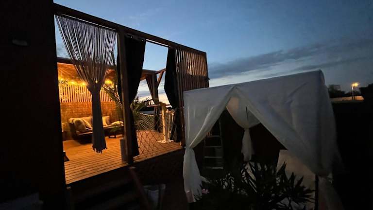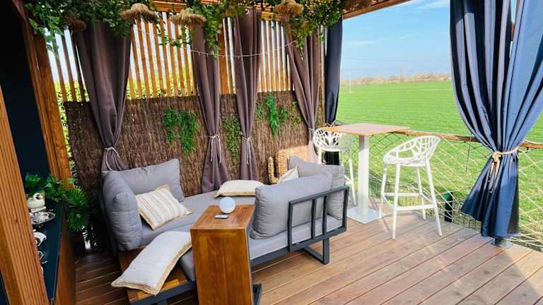 Die Unterkunft Glamour tinyhouse bietet eine überdachte Terrasse und ermöglicht Übernachtungen in einem modernen Ferienhaus. Das Anwesen wird privat geführt und richtet sich an Erwachsene, wobei Junggesellen- oder Junggesellinnenabschiede untersagt sind. Kostenlose Parkmöglichkeiten stehen auf dem Gelände zur Verfügung. Die gesamte Unterkunft ist eine Nichtraucherzone. Tägliche Reinigungsdienste sowie kontaktloser Check-in und Check-out werden angeboten.