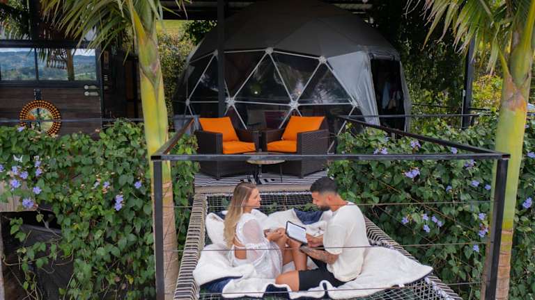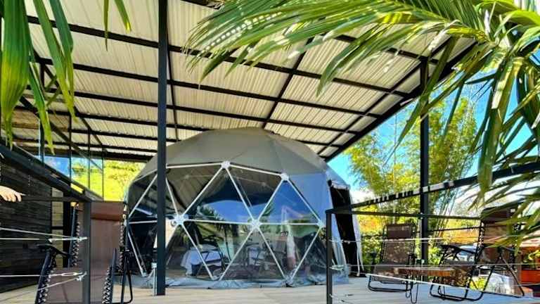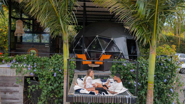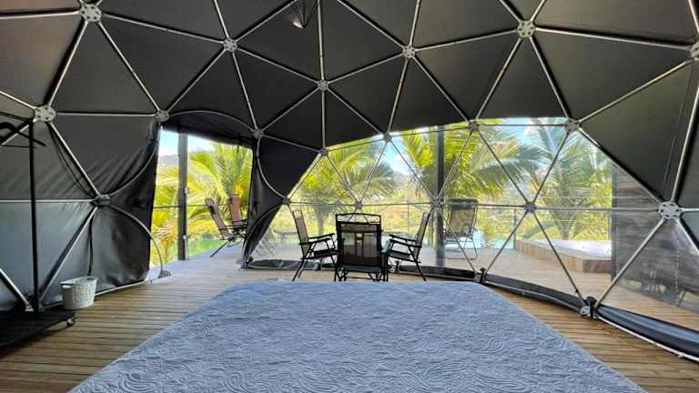 Das Glamping Montecarlo Domo Geodesico y Sauna Finlandés Guatapé bietet eine einzigartige Unterkunftsform in einem geodätischen Domo. Gäste können die Bequemlichkeit von kostenlosem Wifi, einem Garten, Grillmöglichkeiten und einem Whirlpool geniessen. Die Unterkunft wird von einem privaten Gastgeber geführt und hat eine Vielzahl von Einrichtungen und Dienstleistungen zur Verfügung.