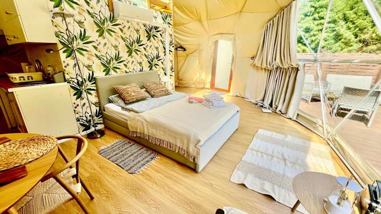 Die Unterkunft Glamping w sercu mazur z prywatna plaża bietet eine Zelt-Lodge mit einer voll ausgestatteten Küche inklusive Kühlschrank, Mikrowelle und Herdplatte. Zudem steht eine Terrasse zur Verfügung, die zum Entspannen einlädt. Die Lodge verfügt über Klimaanlage und einen Grillbereich, ideal für gesellige Abende im Freien. Es wird ein Kinderspielplatz angeboten, und die gesamte Unterkunft ist Nichtraucherzone.