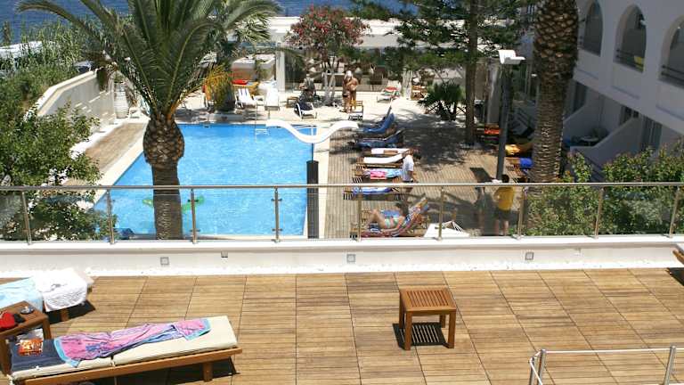 Das 4-Sterne-Hotel Glaros liegt in wunderschöner Lage im beliebten Ferienort Chersonissos direkt am Meer. Das besonders für sein abwechslungsreiches Nachtleben bekannte Ortszentrum ist schnell zu erreichen. Unser in zeitgenössischem Stil eingerichtetes Hotel bietet komfortable Zimmer in luxuriöser Umgebung zu bezahlbaren Preisen. Das 2009 komplett renovierte Hotel bietet moderne Zimmer und Anlagen mit eleganter Note, die alle Annehmlichkeiten für einen erholsamen Urlaub bieten. Die sonnendurchflutete Eingangshalle mit Arkaden, durch die man das Meer schimmern sieht, die komfortabel eingerichteten Zimmer, das stilvoll gestaltete Restaurant und die angenehm kühle Pool-Oase machen das Hotel Glaros zur perfekten Wahl für Ihren Kreta-Urlaub. Und unsere Gastfreundlichkeit und eine aufmerksame Bedienung mit viel Liebe zum Detail werden dafür sorgen, dass Sie immer wieder kommen wollen. Im Hotel Glaros vereint sich die weltoffene, kosmopolite Atmosphäre von Chersonissos aufs angenehmste mit der traditionellen kretischen Gastfreundlichkeit!