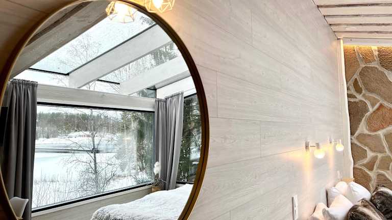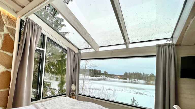 Glass Igloos by the water - Lasisviitit bietet eine klimatisierte Unterkunft in Form von Glaskuppeln mit Blick auf den Fluss. Sie verfügt über ein Schlafzimmer, ein Badezimmer sowie eine voll ausgestattete Küchenzeile und eine Terrasse.