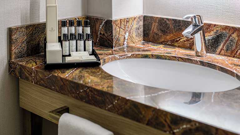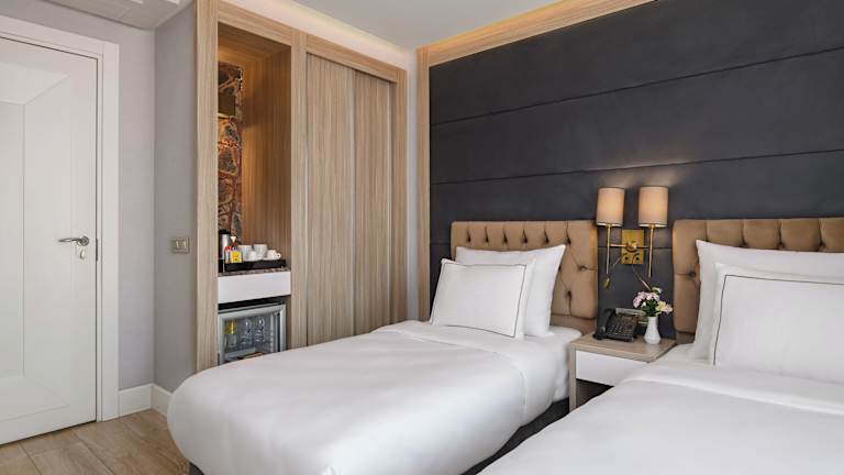 Die Zimmer sind mit Klimaanlage und Heizung ausgestattet und verfügen über ein Doppelbett oder ein Kingsize-Bett. Zustellbetten können auf Anfrage bereitgestellt werden. Jedes Zimmer bietet einen Safe, eine Minibar, einen Schreibtisch, einen Flachbild-TV mit Satellitenkanälen sowie kostenloses Wifi. Die Bäder sind mit einer Dusche und Pflegeprodukten ausgestattet, zusätzlich finden die Gäste Hausschuhe und Bademäntel vor.