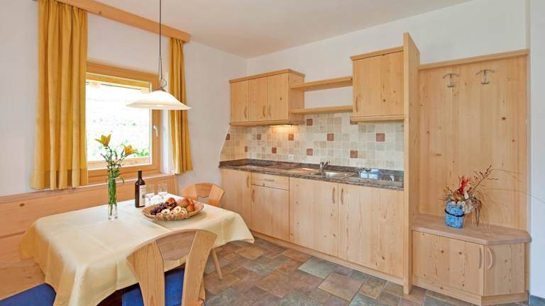 Alle Wohneinheiten im Gleifhof sind mit einem eigenen Balkon und einer Küchenzeile ausgestattet, die einen Kühlschrank und eine Herdplatte umfasst. Jedes Zimmer verfügt über ein eigenes Badezimmer.