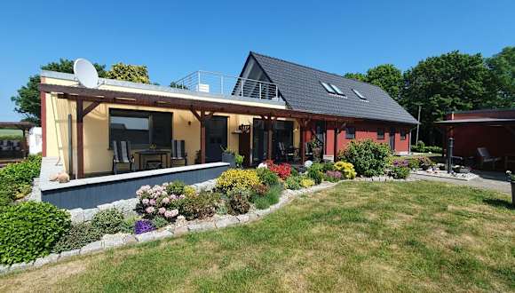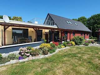 Die Unterkunft Glewitz Am Alten Fährhaus befindet sich in Garz-Rügen, umgeben von einer reizvollen Landschaft und bietet einen direkten Blick auf das Meer.