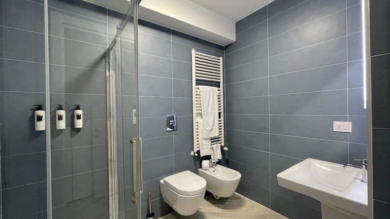 Die Zimmer im Gli Scogli Luxury Residence Hotel sind mit einem Satelliten-Flachbild-TV, einer voll ausgestatteten Küche mit Kühlschrank und Geschirrspüler sowie einem eigenen Badezimmer mit Bidet und kostenlosen Pflegeprodukten ausgestattet. Die Badezimmer verfügen über eine Dusche und Hausschuhe.