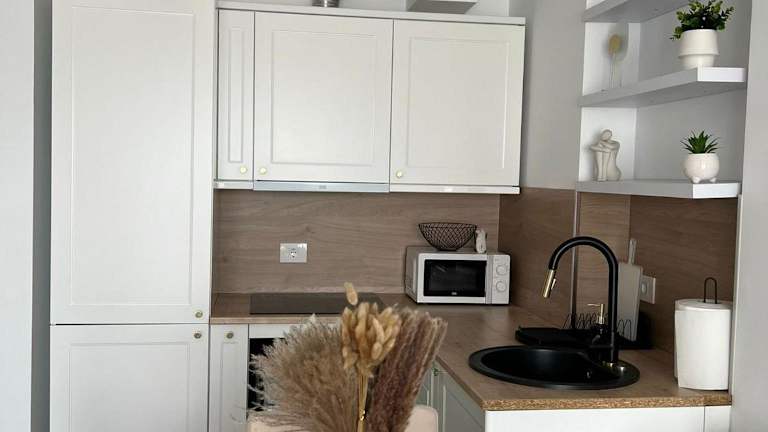 Die Ferienwohnung umfasst ein Schlafzimmer, ein Wohnzimmer und eine voll ausgestattete Küche, die mit einem Kühlschrank und einer Kaffeemaschine ausgestattet ist. Zur Ausstattung gehört auch ein Badezimmer mit einer Badewanne und einem Haartrockner. Handtücher und Bettwäsche werden zur Verfügung gestellt.
