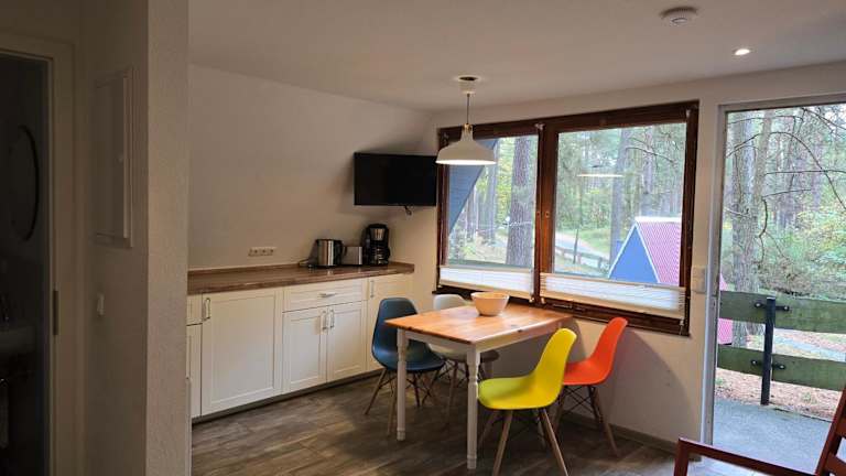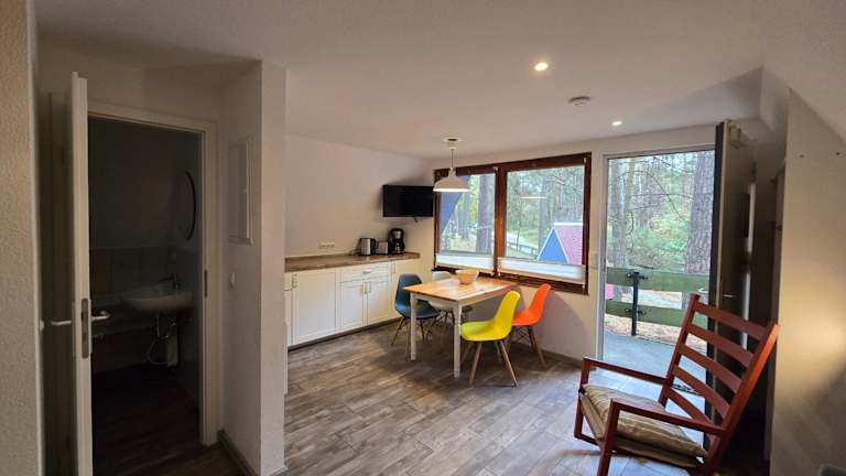 Die Unterkunft Glücklich am Strand befindet sich in der Nähe des Strandes von Trassenheide in der Region Usedom. Es liegt ruhig im Kiefernwald und bietet direkten Zugang zum Strand, ideal für entspannte Ferien.