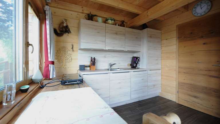 Die Glühwürmchenhütte bietet eine heimelige Atmosphäre mit gut ausgerüsteten Räumlichkeiten. Gäste können zudem den Aussenpool und den Whirlpool nutzen, während ein Kinderspielplatz sowie eine Terrasse mit Bergblick zur Verfügung stehen.