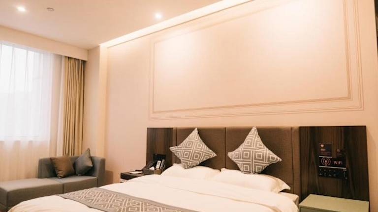 Das GME hotel Zibo Economic Development Zone Zibo Vocational College bietet eine Unterkunft in Zibo und stellt eine Rezeption zur Verfügung, die Gäste über die Umgebung informiert.