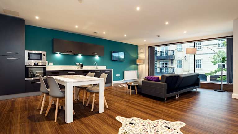 Die Küche in den Zimmern ist mit einem Kühlschrank, Geschirrspüler und Ofen ausgestattet. Eine Mikrowelle, ein Toaster, eine Kaffeemaschine und ein Wasserkocher stehen ebenfalls zur Verfügung, wodurch Gäste sich ihre eigenen Mahlzeiten zubereiten können.