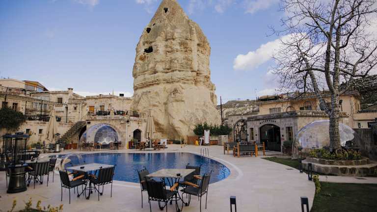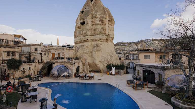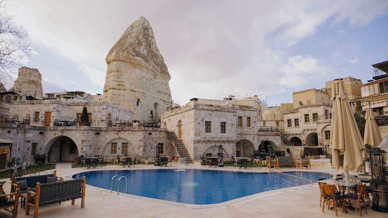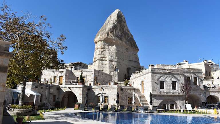 Die Unterkunft Göreme Cave Suites befindet sich in Göreme, 4,1 km von Uçhisar Kalesi entfernt. In der näheren Umgebung liegen unter anderem das Zelve Open Air Museum, welches 7,1 km entfernt ist, sowie das Nikolos Kloster in 9,1 km Distanz. Der Flughafen Nevşehir-Kapadokya ist 38 km entfernt und es wird ein kostenpflichtiger Flughafentransfer angeboten.