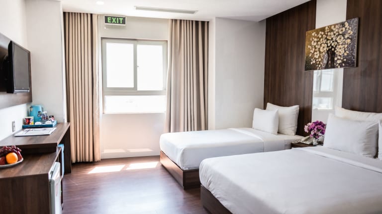 Das Gold Hotel Da Nang by Haviland befindet sich nur 5 Autominuten vom internationalen Flughafen Da Nang entfernt. Sehenswürdigkeiten wie der Fluss Han sind in 3 Minuten mit dem Auto erreichbar, während die Marmorberge und der Strand My Khe in 5 Minuten zu erreichen sind. Auch das Museum Cham liegt nur 7 Gehminuten entfernt.