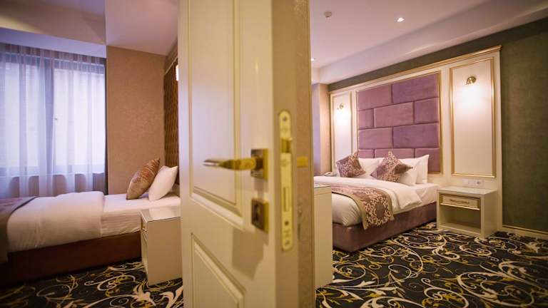 Die Zimmer verfügen über eine Klimaanlage und Heizung. Viele Zimmer verfügen über einen Balkon. Ausgestattet sind sie mit Teppichboden, einem Queensizebett, einem Sofabett sowie Zustellbetten auf Anfrage. Die Zimmer bieten zudem einen Safe, eine Minibar, einen Schreibtisch, einen Kühlschrank und eine Tee-/Kaffeemaschine. Ein TV-Gerät mit Satellitenempfang gehört ebenfalls zur Ausstattung. Im Badezimmer finden die Gäste eine Dusche sowie eine Badewanne vor, ergänzt durch Haartrockner und Kosmetikartikel. Die Unterkunft bietet sowohl Familien- als auch Nichtraucherzimmer an.