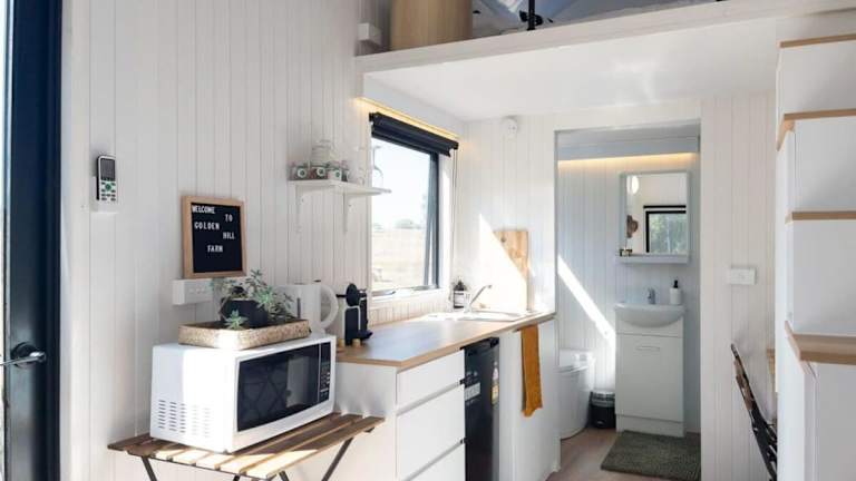 Das Ferienhaus Golden Hill Farmstay by Tiny Away bietet eine heimelige Atmosphäre mit einer Veranda oder einem Patio, die zum Entspannen einladen. Die Unterkunft ist klimatisiert und bietet den Gästen eine gut ausgestattete Küche sowie ein Badezimmer.