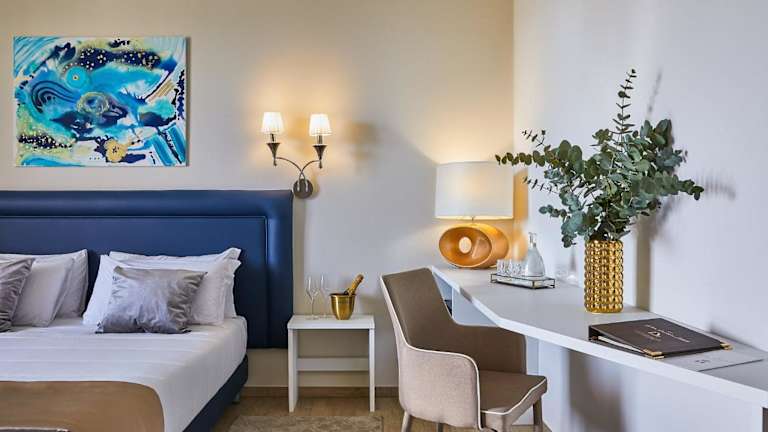 Jedes Zimmer im Golden Hotel ist ausgestattet mit Klimaanlage, Schreibtisch, Balkon mit Poolblick, eigenem Badezimmer, Flachbild-TV, Bettwäsche und Handtüchern. Zudem stehen Kaffeemaschinen, Wasserkocher und Kleiderschränke zur Verfügung. Mehrere Zimmer bieten auch eine Terrasse.