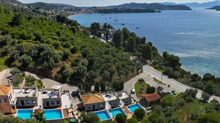 Der Komplex Golden King Villas befindet sich nur wenige Meter vom Strand Mikros Vasilias entfernt. Die Stadt Skiathos und ihr Hafen sind 3,5 km entfernt, während der Flughafen der Insel nur 2 km entfernt liegt. Der malerische Strand von Koukounaries ist in 7 km Entfernung erreichbar.