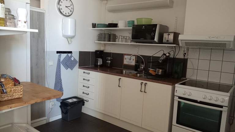 Ein Frühstück zur Selbstbedienung wird jeden Morgen in der Gemeinschaftsküche serviert. Zudem steht den Gästen den ganzen Tag über kostenfreier Kaffee zur Verfügung.