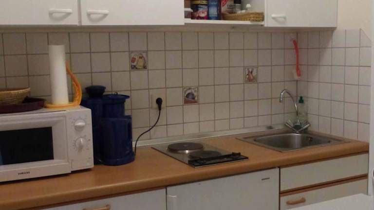 Die Ferienwohnung umfasst 1 Schlafzimmer und eine Küchenzeile, die mit einem Kühlschrank und einer Kaffeemaschine ausgestattet ist. Ein TV steht ebenfalls zur Verfügung.