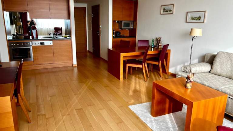 Das Golf & Relax Apartment mit 4*S-Anbindung ist eine moderne Ferienwohnung, die über einen Außenpool, eine Gemeinschaftslounge und eine Terrasse verfügt. Sie bietet kostenfreies WLAN und einen Blick auf den Garten.