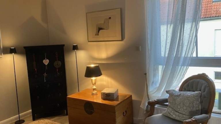 Die Ferienwohnung ist ausgestattet mit einem Schlafzimmer, einer Küche, die mit Kühlschrank und Geschirrspüler versehen ist, einem Badezimmer mit Dusche, Haartrockner und Waschmaschine. Handtücher und Bettwäsche werden bereitgestellt.